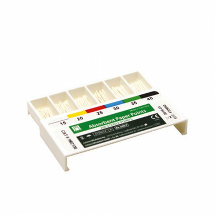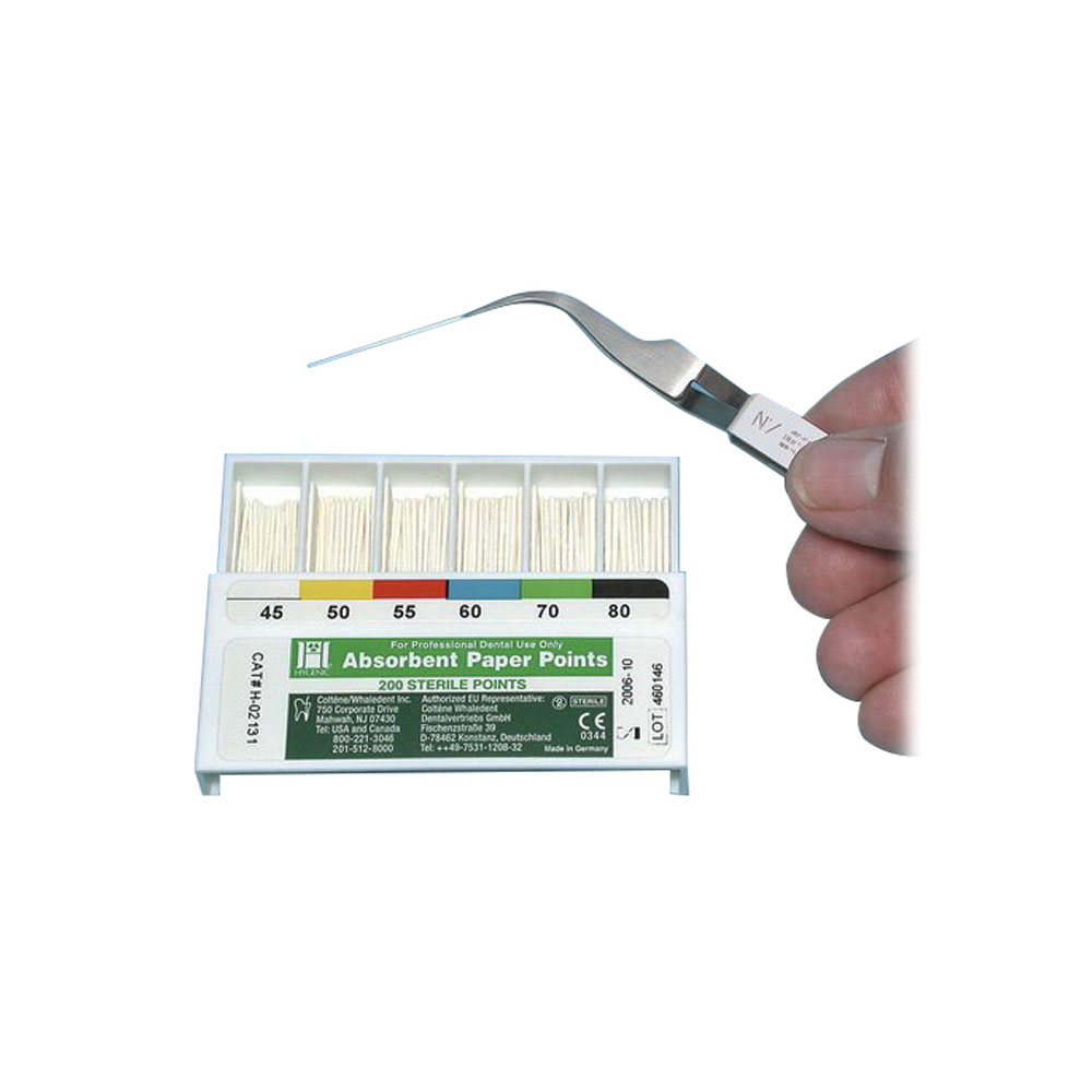 Superior absorbency insures complete drying of the root canal while being rigid enough to be easily inserted and withdrawn, yet retain integrity as a firmly rolled shape when wet.