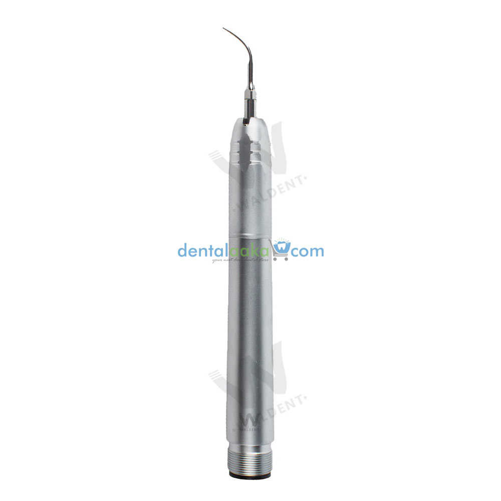 The air-driven Waldent Air-scaler with the integrated water spray outlet is an ideal tool for the removal of plaque and calculus during supra & sub gingival scaling.
